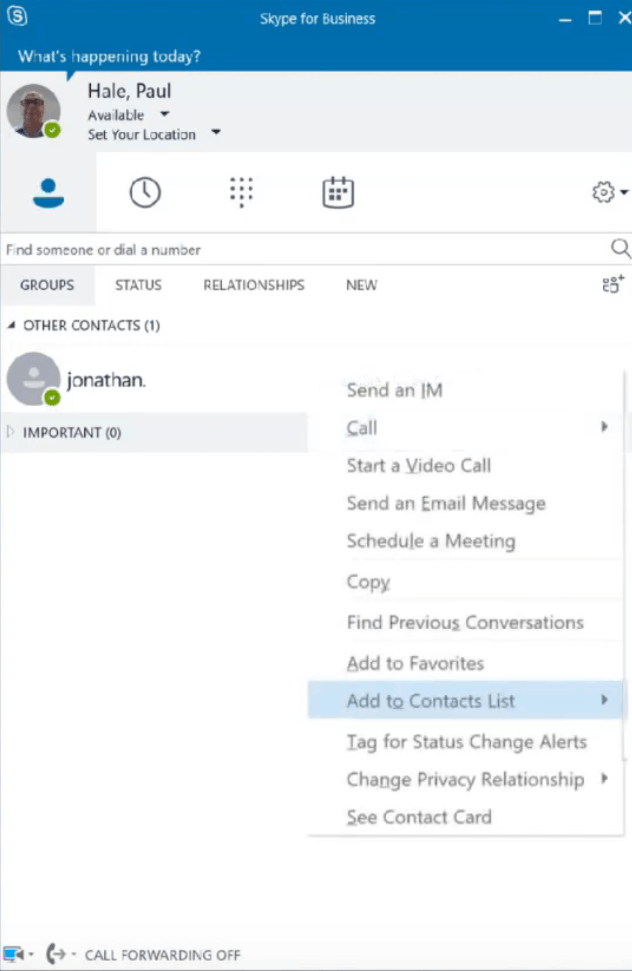 Contacts: adding contacts with in the company and external, creating contact groups, tracking status changes,